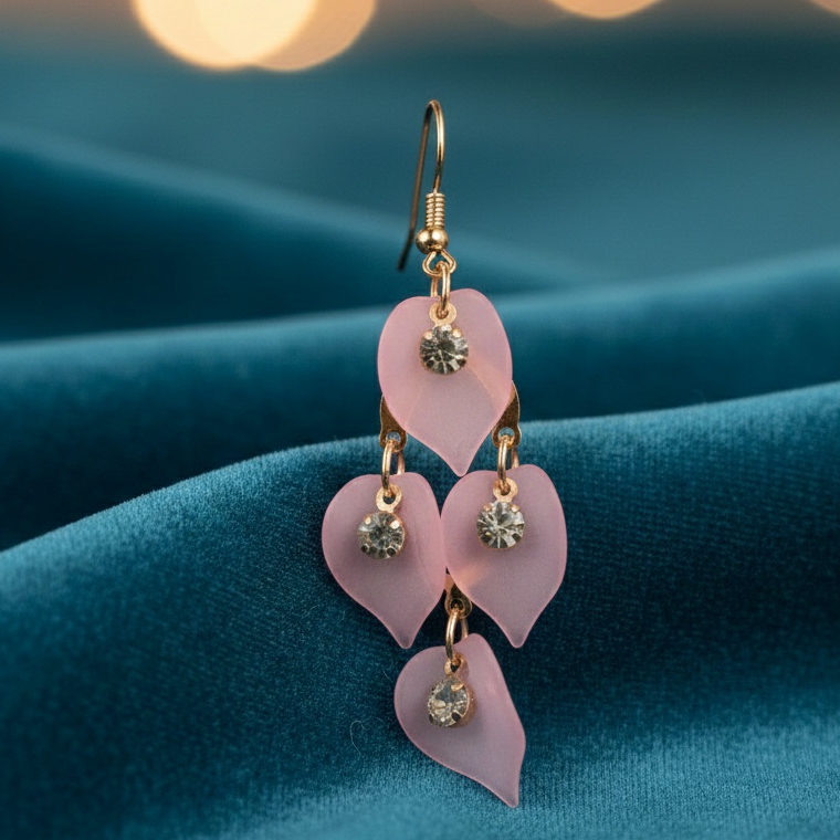 Add a soft romantic touch to your look with these Blush Pink Heart Drop Earrings. Featuring delicate heart-shaped charms accented with sparkling crystals, this elegant design moves beautifully with every step. Lightweight and eye-catching, they’re perfect for date nights, special occasions, or adding a sweet feminine glow to your everyday style.